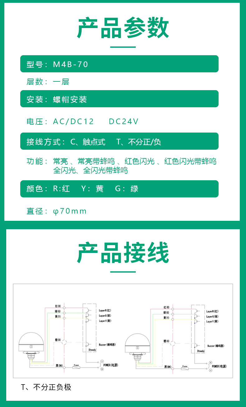 产品名称:单层三色警示灯 机床半球信号灯 自动化多色指示灯 ONN-M4B-70